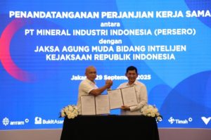 WWW.INDONESIACERDASNEWS.COM ||JAKARTA – Jaksa Agung Muda Intelijen (JAM-Intel) Reda Manthovani melaksanakan penandatanganan Perjanjian Kerja Sama dengan Direkur Utama PT Mineral Industri Indonesia (Persero) atau MIND ID Maroef Sjamsoeddin pada Senin 29 September 2025 di Graha CIMB Niaga Jakarta. Kegiatan ini merupakan implementasi dari fungsi pengamanan pembangunan strategis Kejaksaan terhadap sektor pertambangan. Dalam sambutannya, JAM-Intel menyampaikan […]