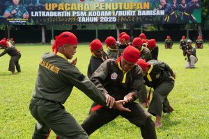 Read MoreWWW.INDONESIACERDASNEWS.COM ||MEDAN, 23 September 2025 — Latihan Kader Pelatih PSM (Pencak Silat Militer) yang digelar Kodam I/Bukit Barisan resmi ditutup di Lapangan Upacara Makodam, Senin (22/9/2025). Sebanyak 165 prajurit mengikuti kegiatan ini selama beberapa pekan. Pangdam I/Bukit Barisan Mayjen TNI Rio Firdianto memimpin langsung penutupan latihan. Dalam amanatnya, Pangdam menekankan bela diri bukan hanya keterampilan […]
